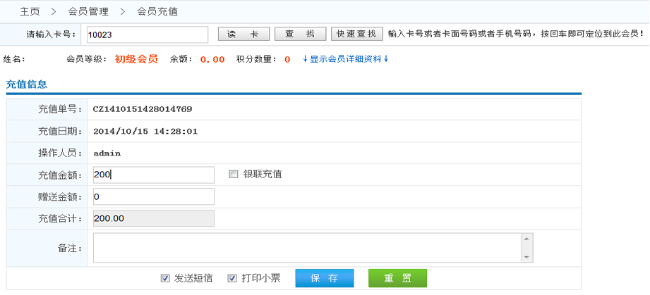 -> 五通一卡通云會員管理系統(tǒng)會員充值