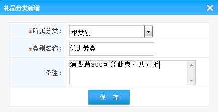 禮品分類列表:展示系統(tǒng)中設(shè)置的所有的禮品分類