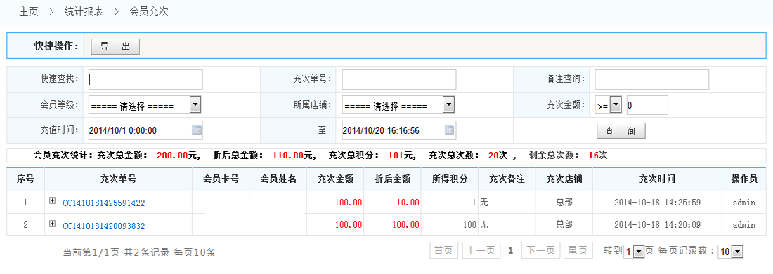會(huì)員信息統(tǒng)計(jì): 2.導(dǎo)出:將按條件查詢(xún)到的數(shù)據(jù) 導(dǎo)出成Excel表格 3.查詢(xún):按照條件查詢(xún)出數(shù)據(jù)(例如 根據(jù)會(huì)員的店鋪會(huì)員的等級(jí)等)