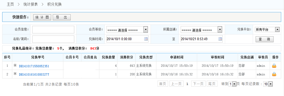 5.列表:雙擊兌換單號(hào)可以查詢(xún)兌換詳情;點(diǎn)擊操作一欄中的打印