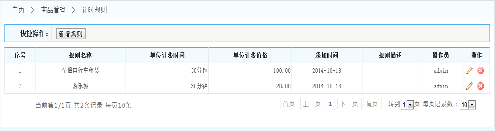規(guī)則列表:展示系統(tǒng)內(nèi)設(shè)置的所有的規(guī)則 (操作一欄 可以對每條規(guī)則進行修改和刪除 )