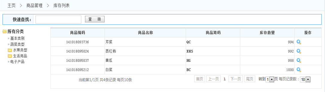 庫存列表:點擊進入庫存列表信息頁面 如下圖: