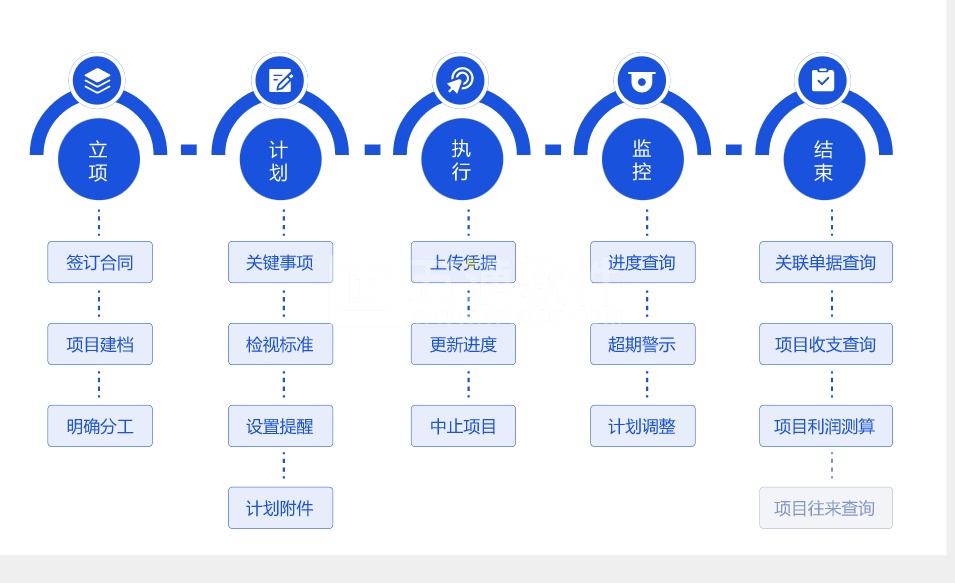 系統(tǒng)中支持查詢:項(xiàng)目進(jìn)度(含關(guān)聯(lián)單據(jù))、項(xiàng)目資金收支情況、項(xiàng)目利潤測算情況、項(xiàng)目損益表(財)。